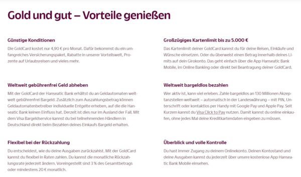 Infos über die Hanseatic GoldCard: