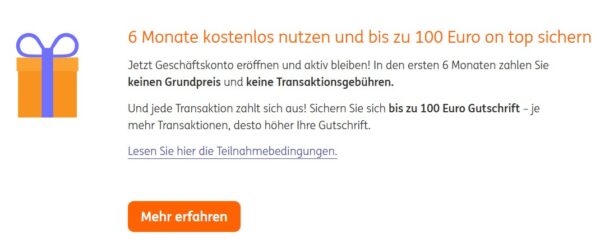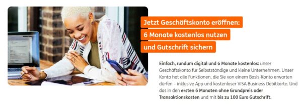 ING-Geschäftskonto 6 Monate kostenlos testen + bis zu 100€ Gutschrift