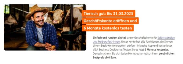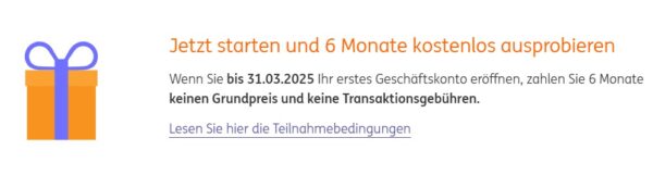 Ihr sucht ein neues Geschäftskonto, dann könnte der Deal genau der richtige für euch sein, bei der ING könnt ihr gerade das Geschäftskonto 6 Monate kostenlos testen.