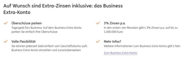 - Auf Wunsch mit Business Extra-Konto Sichern Sie sich Tagesgeld-Zinsen für Ihre Überschüsse mit unserem kostenlosen Tagesgeld-Konto fürs Business