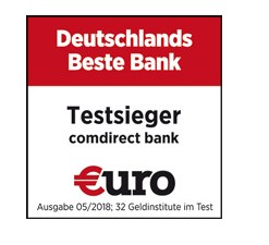 Das Angebot gilt bis zum 22.06.2018 und nur für comdirect Neukunden. Neukunde ist, wer in den letzten 6 Monaten vor Kontoeröffnung nicht bereits Kunde der comdirect war. Alle Details finden Sie in den Teilnahmebedingungen zur Aktion.