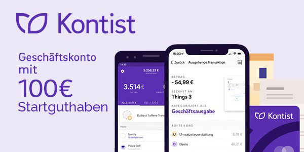 Du bist selbstständig und suchst nach einem passenden Girokonto? Bei Kontist, einem deutschen Startup aus Berlin, erhaltet ihr gerade für die Eröffnung des kostenlosen, mitdenkenden Girokontos ein satten Startguthaben von 100€. Hierzu gilt es lediglich einige Bedingungen (siehe weiter unten) einzuhalten. 🙂