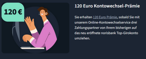 – Neukunden (= kein norisbank Kunde in den letzten 12 Monaten) erhalten aktuell 120 €.