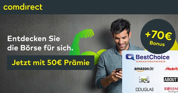 - 🔥 Obendrauf: 50€ Cash von der comdirect für drei Trades innerhalb der ersten 14 Tage