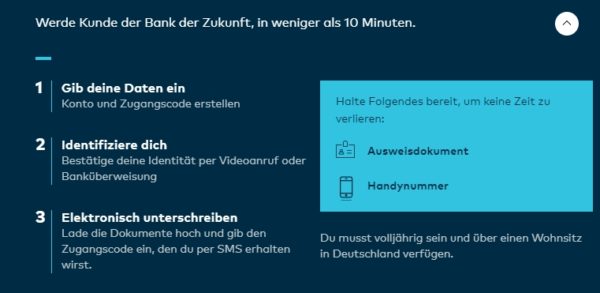 Richtig gut ist dass man das Konto durch eine einfache Überweisung verifizieren kann. Post-Ident / Video-Ident ist damit nicht nötig.