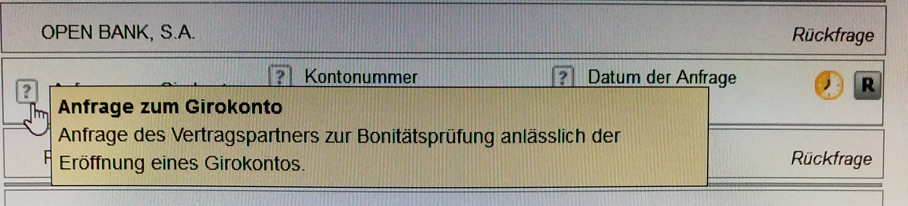 dasSams 13.02.2021, 15:49 #Ganz genau steht bei dem Fragezeichen in der Schufa " Anfrage des Vertragspartners zur Bonitötsprüfung anlässlich der Eröffnung eines Girokontos."