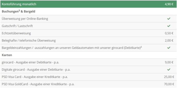 Das Konto ist leider nicht kostenlos aber die 4,90€ Kontoführungsgebühren sind dennoch recht günstig im Vergleich zu vielen anderen Banken.