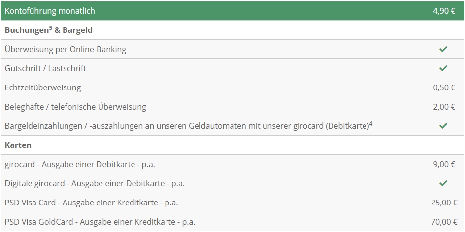 - 2 Ab dem 2. Jahr PSD Visa Card – Ausgabe einer Kreditkarte – pro Jahr 25 €.