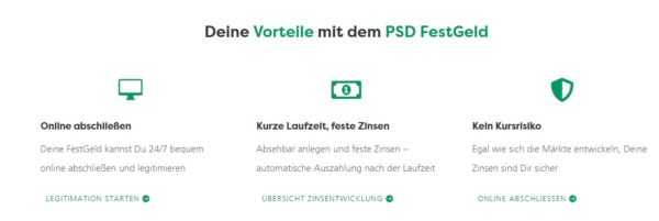 Hier nochmal kurz die Vorteile des PSD FestGeld:
