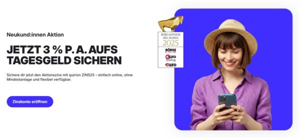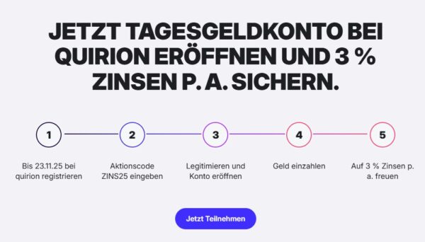 Quirion: 3% Zinsen p.a. auf Tagesgeld sichern (für 3 Monate)