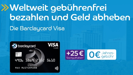 25€ Startguthaben für weltweit gebührenfreie Barclay-VISA-Karte