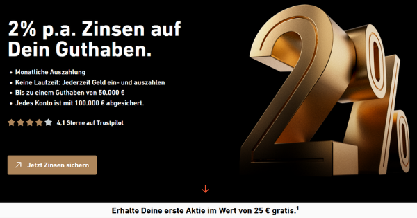 - NEU 2% Zinsen p.a. auf der Verrechnungskonto mit monatlicher Ausschüttung