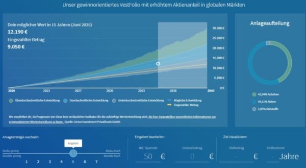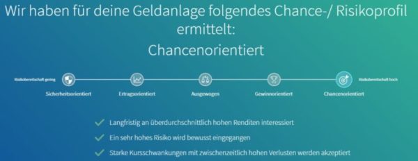 Danach könnt ihr euch für eine Anlagestrategie entscheiden, die auf eure Antworten (also Erfahrungen und Risikobereitschaft) gemünzt ist: