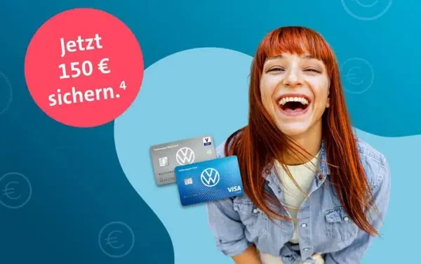 Für die Eröffnung des Volkswagen Girokontos in Kombination mit der Volkswagen Visa Card gibt es einen satten 150€ Starterbonus – ideal für alle, die ein solides Konto suchen und direkt mit einem Plus starten wollen.