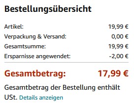 für 17,99€ (Vergleichspreis: ~45€) Ersparnis ~27€