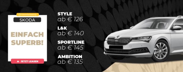 Du bist gewerbetreibend und suchst gerade nach einem neuen, fahrbaren Untersatz? Dann könnte es durchaus sein, dass wir genau das Richtige für dich haben! 😉 Bei Vehiculum gibt es gerade den Skoda Superb Kombi ab 126€ (Netto) pro Monat. Das Angebot versteht sich bei einer Laufzeit von 24 Monaten und einer jährlichen Laufleistung von 10.000 Kilometer.