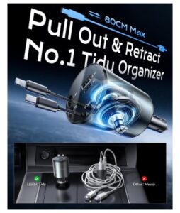 - Das einziehbare 4-in-1-Autoladegerät von LISEN revolutioniert das Aufladen im Auto mit seinen einziehbaren PD-USB-C- und USB-Lightning-Kabeln. Dieses USB-C-Autoladegerät ist auf Komfort und Sauberkeit ausgelegt und unterstützt gleichzeitiges Schnellladen Das Aufladen von Android- und iPhone-Geräten gewährleistet eine überragende Langzeitleistung. Außerdem kann die robuste 69-W-Leistung vier Geräte gleichzeitig mit Strom versorgen.