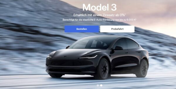 Bei Tesla gibt es gerade das Tesla Model 3 Premium (RWD & AWD) für 459 € mtl. (Vergleichspreis: Marktzins ca. 4-5 %) Ersparnis ~2.000€ Zinskosten.