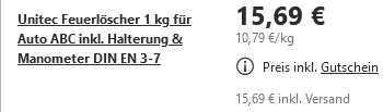 Bei Globus Baumarkt via eBay gibt es gerade den Unitec KFZ-Feuerlöscher (1KG) für 15,69€ (Vergleichspreis: ~26€) Ersparnis ~10€