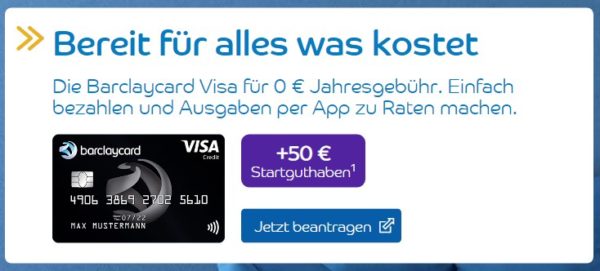 *LETZTE CHANCE* *KNALLER* 50€ Startguthaben für die gebührenfreie Barclaycard New Visa Kreditkarte