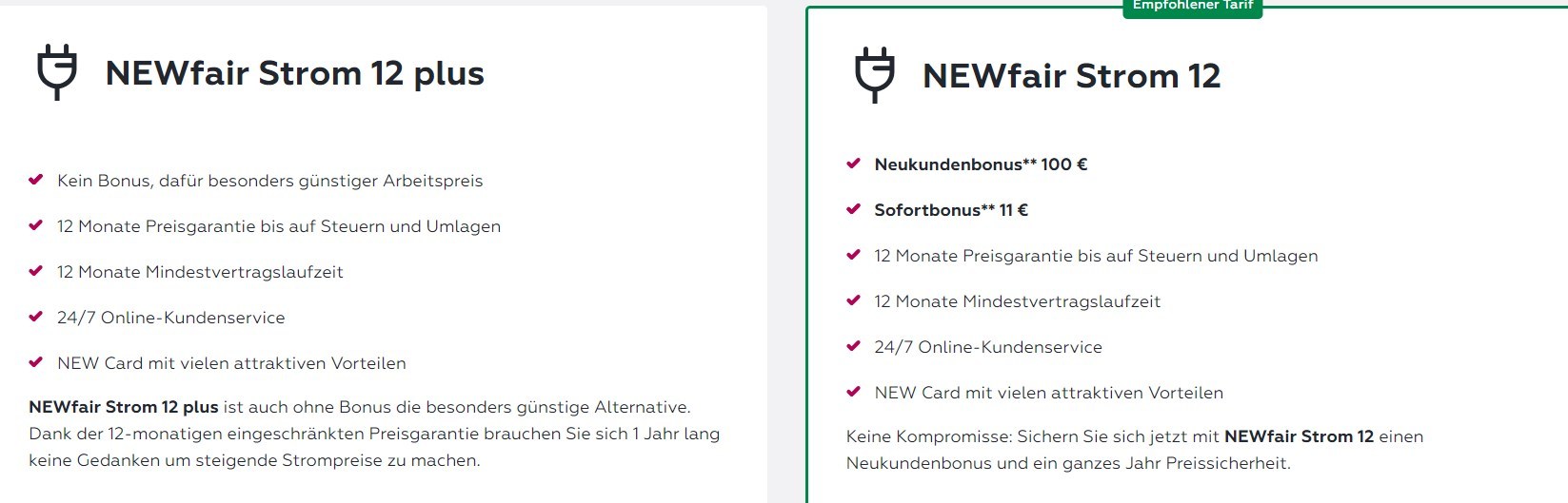 - 85€ Bonus bei Abschluss bei der NEW Energie