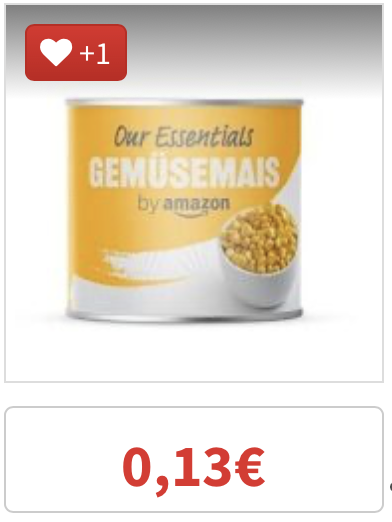 Dank Bestellung per Amazon Spar-Abo gibt es by Amazon Gemüsemais, 340g für effektiv 1,13€.