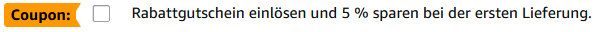 Mit dem Spar-Abo profitierst du von kostenlosem Standardversand für automatische Lieferungen (für alle ohne Prime-Mitgliedschaft fallen bei der ersten Lieferung möglicherweise Versandkosten an) und der Möglichkeit, Lieferungen an deinem Spar-Abo-Liefertag zu planen. Qualifizierte Produkte weisen oft einen im Vergleich zum Preis bei Amazon und im Amazon Marketplace reduzierten Preis auf. Du kannst ein Abonnement jederzeit kündigen. 🚫