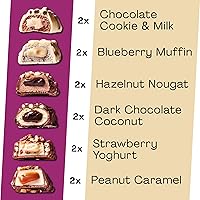 - MAXIMALE GESCHMACKSVIELFALT: Verwöhne dich mit Vielfalt. Unsere Mixbox enthhält: 2x Strawberry Yoghurt, 2x Peanut Caramel, 2x Hazelnut Nougat, 2x Blueberry Muffin, 2x Dark Chocolate Coconut und 2x Cookie & Milk.