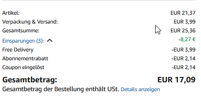 Damit kommt ihr im Bestfall sogar auf effektiv nur 17,09€. 🙂