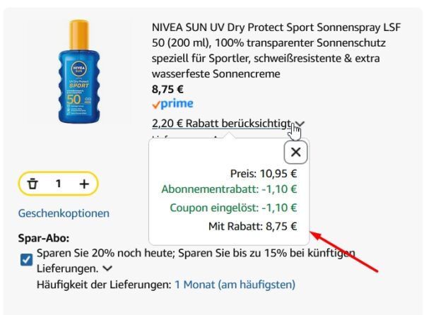Bei diesem Artikel gibt es für einige Kunden außerdem noch einen weiteren Gutschein zum Aktivieren für die erste Spar-Abo Lieferung in Höhe von zusätzlich 10%.