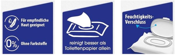 - Sanfte und pflegende Reinigung – besser als trockenes Toilettenpapier allein: Hochwertige, feuchte Toilettentücher, angereichert mit natürlicher Kamille. Sicher herunterspülbar und schnell auflösend