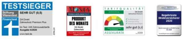 Im Februar 2020 wurde die DA direkt Zahnzusatzversicherung von FOCUS Money als „Produkt des Monats“ ausgezeichnet. Im Juni 2020 hat die DA direkt von der Stiftung Warentest die Bestnote (0,5) unter 249 Zusatztarifen bekommen.