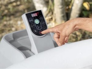 - Praktische Steuerung von Temperatur, Filter- und Massagesystem durch hochklappbares Bedienfeld