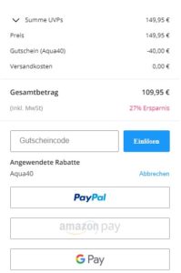 Nutzt den Gutschein AQUA40 und schon kommt ihr auf den genannten Preis