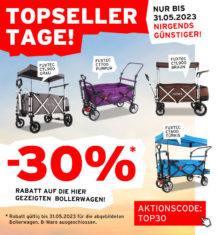 CaptainSaft 28.05.2023, 18:00 #Zur zeit gibt es 30% Rabatt auf ausgesuchte Bollerwagen. Gutscheincode Top