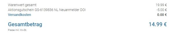 Nutzt den 5€ Newsletter-Gutschein und schon kommt ihr auf den Preis.