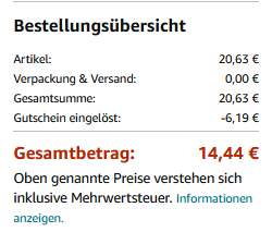 ab 14,44€ (Vergleichspreis: ~28,64€) Ersparnis ~14€