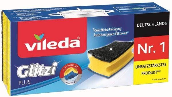 - Der Vileda Glitzi Plus Topfreiniger hat zwei leistungsstarke Reinigungsseiten zum Geschirrspülen und zum Reinigen von Oberflächen