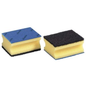 - Die schwarze Scheuerseite des Schwamms entfernt hartnäckigen Schmutz besonders gründlich, während die blaue Seite Verschmutzungen sanft aufwischt