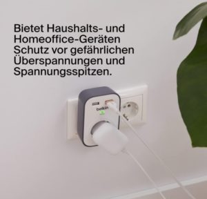 - Wenn Ihr Gerät durch elektrische Ladung beschädigt wird, während es ordnungsgemäß an den Überspannungsschutz angeschlossen ist, repariert oder ersetzt Belkin es für einen Wert von bis zu 15.000 €; nur wenn es direkt von Amazon geliefert und verkauft wird