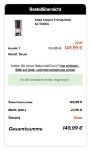Neuer Deal von Ninja, dort bekommt ihr die Ninja Creami Eismaschine NC300EU für 149,99€ (Vergleichspreis ~161€) Ersparnis ~11€
