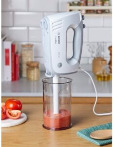 Bosch Handrührer ErgoMixx MFQ36440, 2 Rührbesen, 2 Edelstahl-Knethaken, Pürierstab, Becher für 31,99€