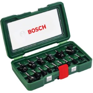 - Lieferumfang: 3 Abrundfräser, 1 Bündigfräser, 1 Falzfräser, 1 Fasefräser, 2 Hohlkehlfräser, 4 Nutfräser, 1 V-Nutfräser, 1 Zinkenfräser, Holzkoffer