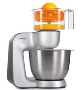 Bosch Küchenmaschine MUM5 Styline MUM56340, Schüssel 3,9 L, Mixer 1,25 L, Fleischwolf, Zitruspresse, Planetenrührwerk, Knethaken, Schlag-, Rührbesen, Durchlaufschnitzler, 3 Scheiben, 900 W für 229,99€