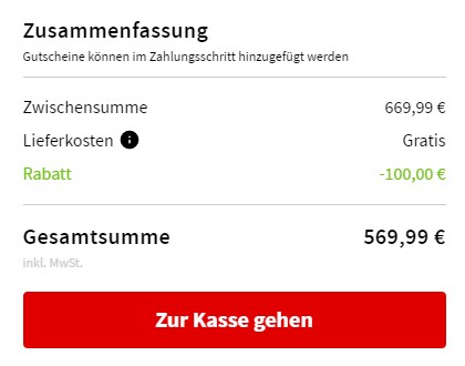 Auf den Preis kommt ihr, durch einen 100€ Direktabzug im Warenkorb.