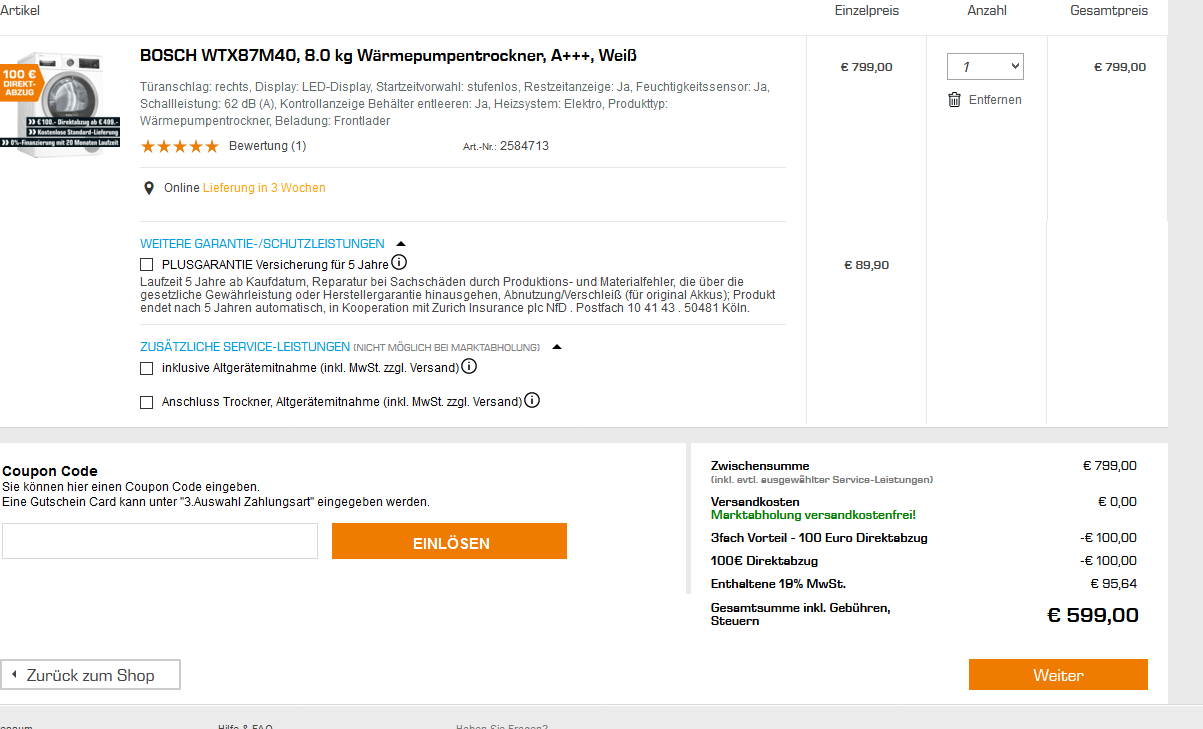 Tayfun 30.10.2019, 08:24 #Jetzt 2×100 Euro Direktabzug im Warenkorb für 599,00 Update!