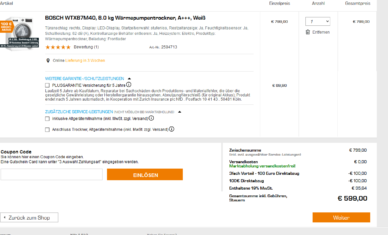 Denn bei Saturn bekommt man den Bosch WTX87M40 Trockner (8 Kg, A+++, LED) für 599€ (Vergleichspreis: ~799€) Ersparnis ~200€.