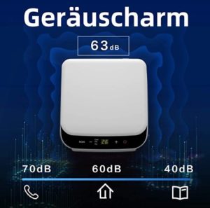 - Geräuscharm: Dank des niedrigen Schallleistungspegels (nur 63 dB) eignet sich das Gerät für den Einsatz in Schlafräumen