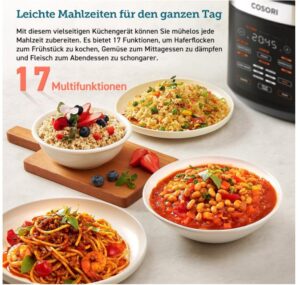 - 🏆Testsieger Reiskocher: Von professionellen Prüforganisationen als köstlich zertifiziert. Aus ETM-TESTMAGAZIN ,,Mit einem Reiskocher… er sich am Ende durch eine makellose, dem Gaumen schmeichelnde Konsistenz hervorheben kann. All dies soll auch der CRC-R501 von COSORI können,,