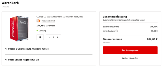 Bei MediaMarkt gibt es den Cubes CC 166 CocaCola Kühlschrank ab 164,99€ (Vergleichspreis: ~340€) Ersparnis ~175€